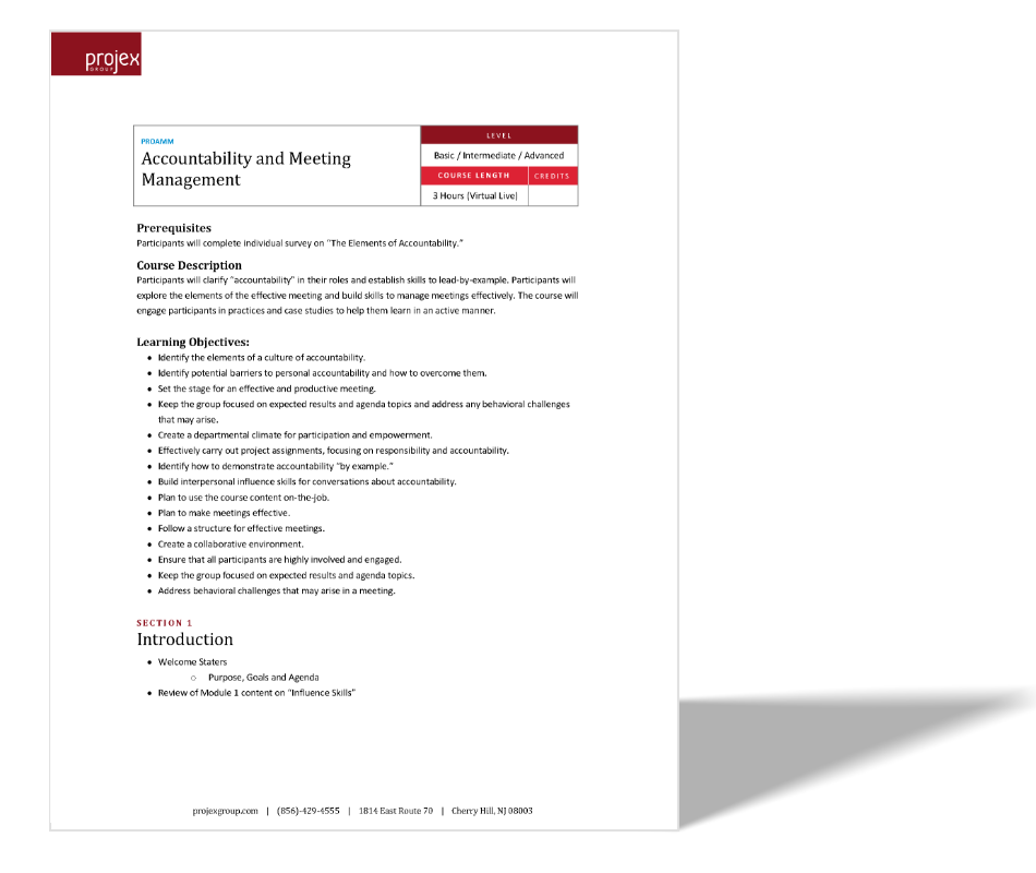 Participants will clarify “accountability” in their roles and establish skills to lead-by-example. Participants will explore the elements of the effective meeting and build skills to manage meetings effectively. The course will engage participants in practices and case studies to help them learn in an active manner.