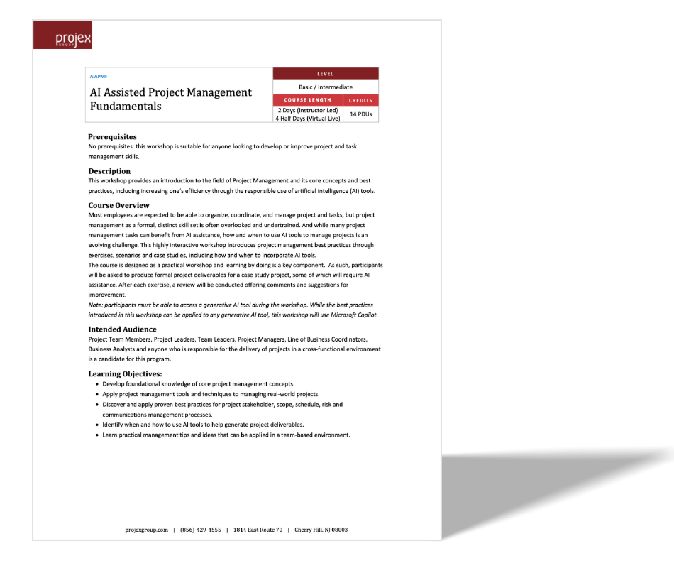 Most employees are expected to be able to organize, coordinate, and manage project and tasks, but project management as a formal, distinct skill set is often overlooked and undertrained. And while many project management tasks can benefit from AI assistance, how and when to use AI tools to manage projects is an evolving challenge. This highly interactive workshop introduces project management best practices through exercises, scenarios and case studies, including how and when to incorporate AI tools.