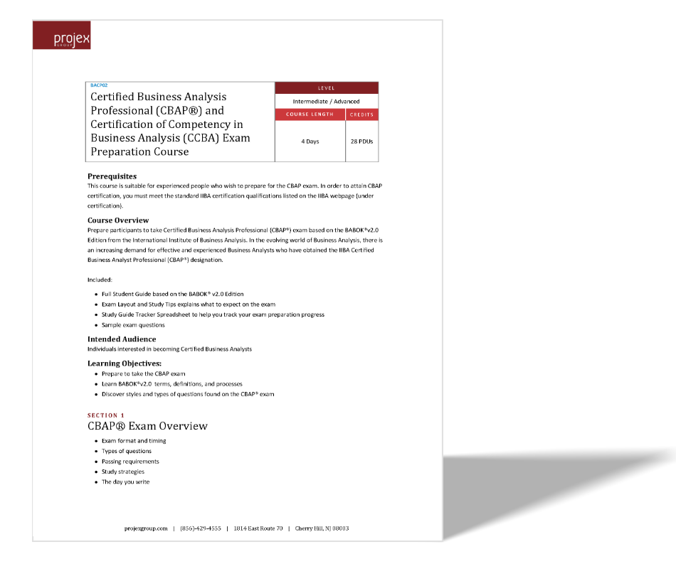 Certified Business Analysis Professional (CBAP®) and Certification of Competency in Business Analysis (CCBA) Exam Preparation Course