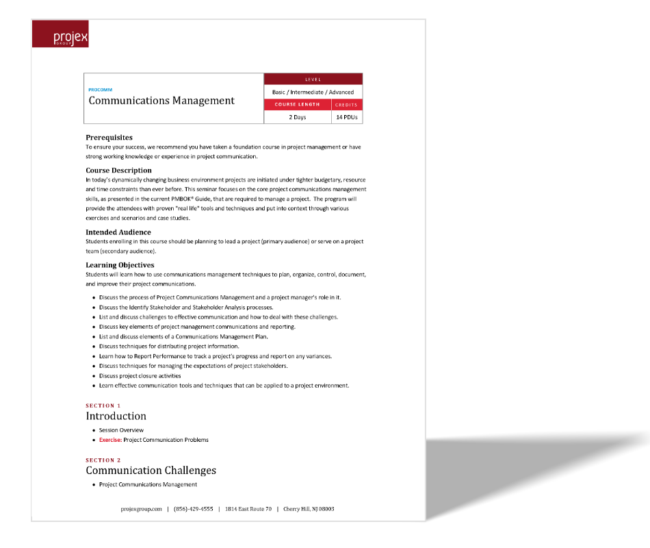 In today’s dynamically changing business environment projects are initiated under tighter budgetary, resource and time constraints than ever before. This seminar focuses on the core project communications management skills, as presented in the current PMBOK® Guide, that are required to manage a project. The program will provide the attendees with proven "real life" tools and techniques and put into context through various exercises and scenarios and case studies.