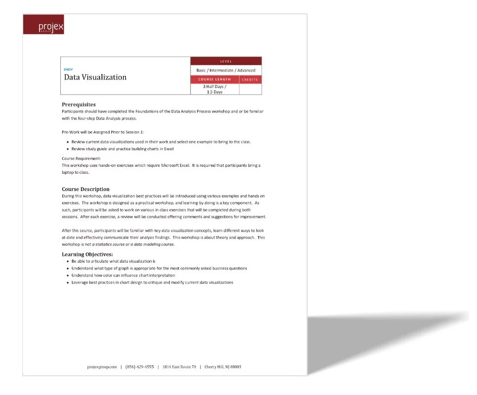 After this course, participants will be familiar with key data visualization concepts, learn different ways to look at date and effectively communicate their analysis findings. This workshop is about theory and approach. This workshop is not a statistics course or a data modeling course.