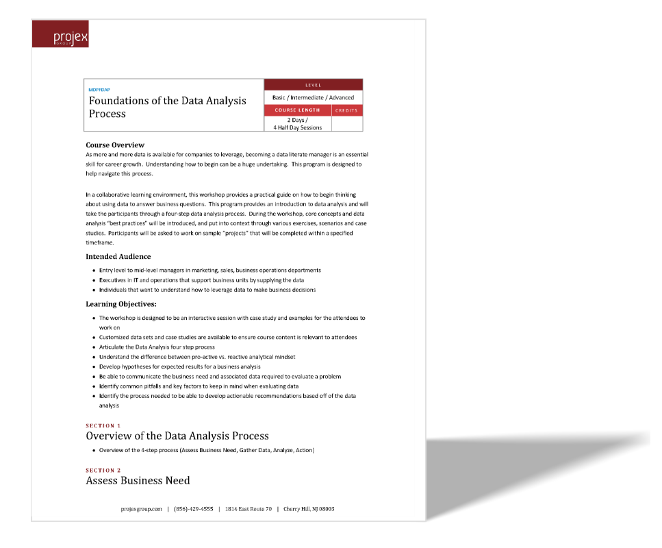 In a collaborative learning environment, this workshop provides a practical guide on how to begin thinking about using data to answer business questions. This program provides an introduction to data analysis and will take the participants through a four-step data analysis process. During the workshop, core concepts and data analysis “best practices” will be introduced, and put into context through various exercises, scenarios and case studies. Participants will be asked to work on sample “projects” that will be completed within a specified timeframe.