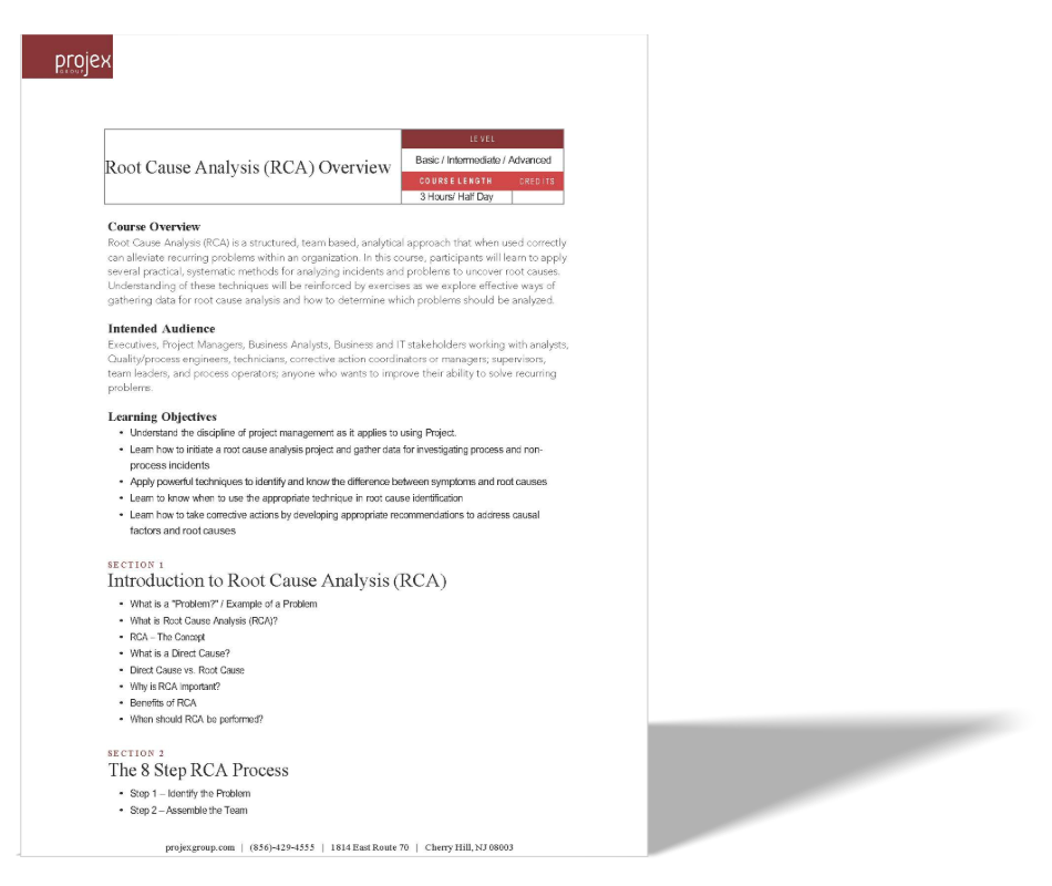 Root Cause Analysis (RCA) is a structured, team based, analytical approach that when used correctly can alleviate recurring problems within an organization. In this course, participants will learn to apply several practical, systematic methods for analyzing incidents and problems to uncover root causes. Understanding of these techniques will be reinforced by exercises as we explore effective ways of gathering data for root cause analysis and how to determine which problems should be analyzed..